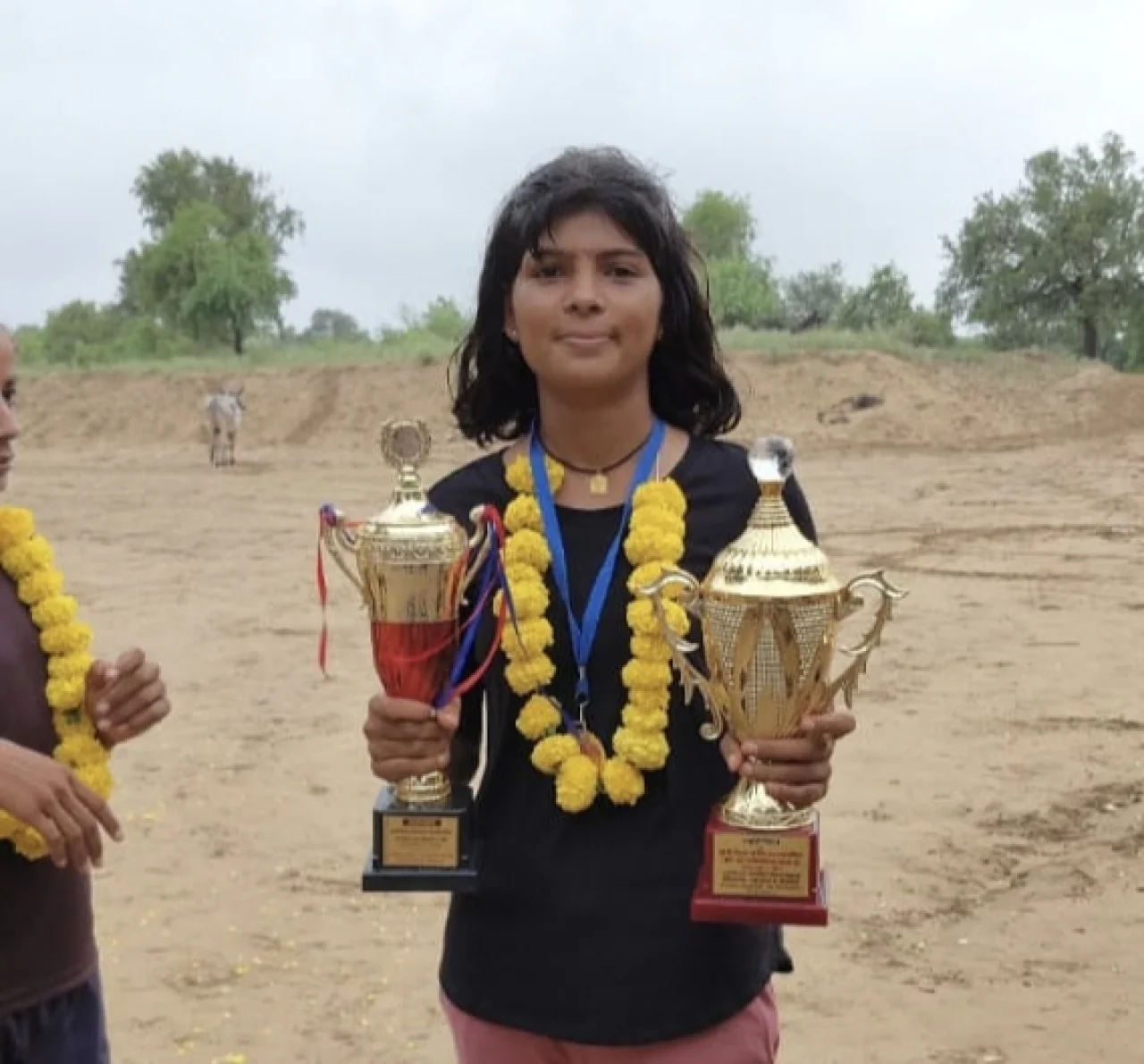 पवनी फुटबॉल में और धापू खो-खो में राज्य स्तर पर चयनित हुईं। यह उपलब्धि “हज़ार बर्क़ गिरे, लाख आँधियाँ उठें, वो फूल खिल के रहेंगे जो खिलने वाले हैं” के चरितार्थ के रूप में देखी जा रही है।