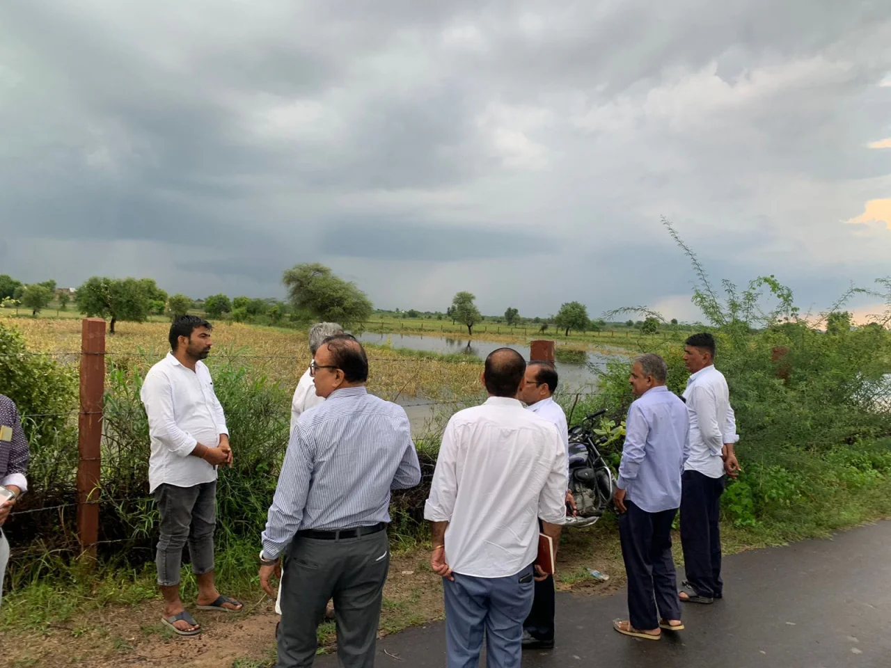 निरीक्षण के दौरान यह साफ दिखाई दिया कि भारी बारिश से खेतों में जलभराव, फसलें पीली पड़ना और पूरी तरह खराब होना किसानों के सामने सबसे बड़ी चुनौती है। विशेषकर ग्वार, बाजरा और मूंग जैसी खरीफ फसलों को भारी नुकसान हुआ है।